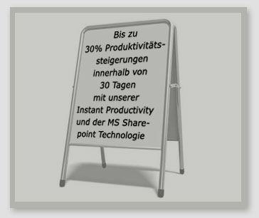 Mit den Microsoft Sharepoint Services (bei jeder Windows Server Lizenz dabei) bzw. dem Sharepoint Server können wir schnell best-practice Prozesse, Teamsites, Formulare und Workflows etablieren und Ihre Information Worker damit signifikant entlasten und das innerhalb von 30 Tagen zum Fixpreis.